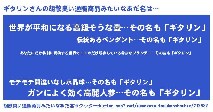 | ヘコむあだ名 | 『レバニラ』『ギタ太郎』『ギタにー』 |