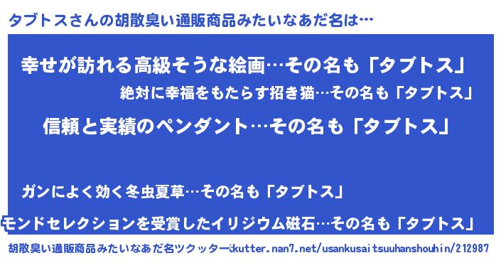 | 意味不明あだ名 | 『とにかく怪しいタブトス』 |