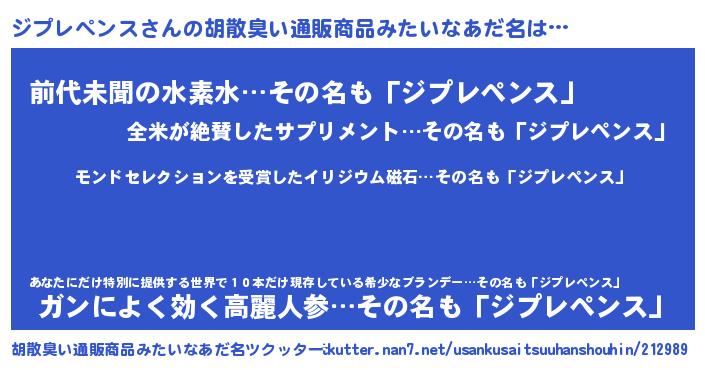 | ヘコむあだ名 | 『ジプレペンス(爆)』『ジプっぺ』 |