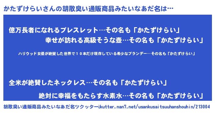 | 意味不明あだ名 | 『住所不定無職かたずけらい(79歳)』 |