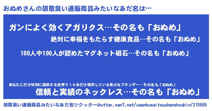 | ヘコむあだ名 | 『おぬを』『おぬめ(爆)』『豆乳』 |