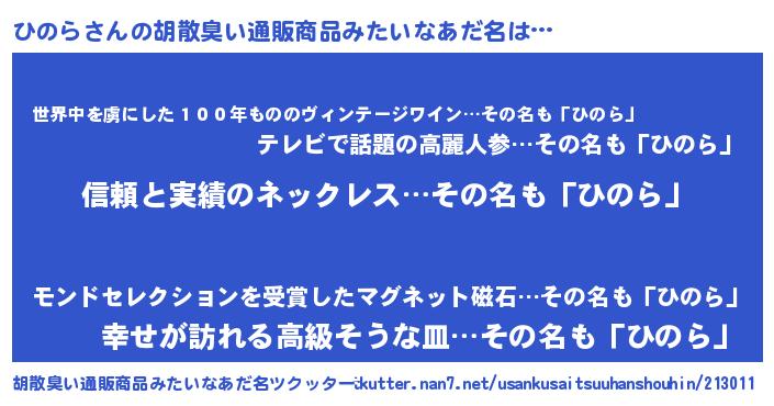 | 意味不明あだ名 | 『とにかく怪しいひのら』『自称ひのら』 |