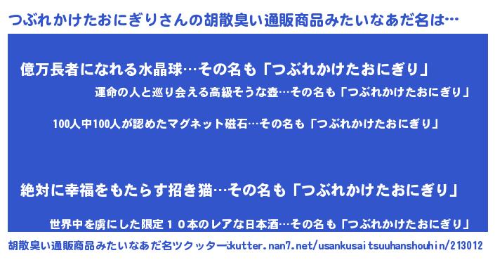 | 男性向けラノベタイトル風あだ名 | 『おまえをオタクにしてやるから、俺をつぶれかけたおにぎりにしてくれ! 』 |