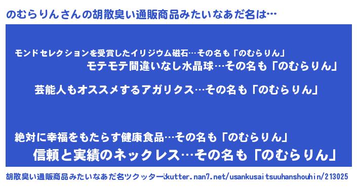 | 意味不明あだ名 | 『自称のむらりん』『ペロリンのむらりん』 |