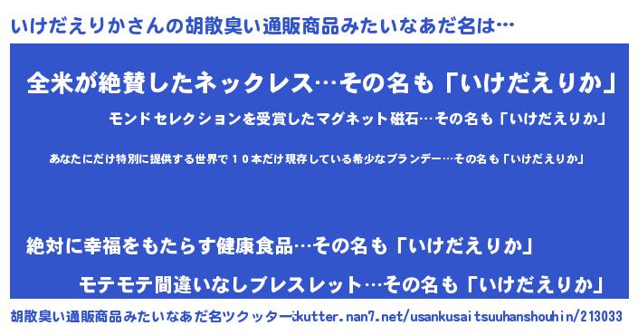 | 意味不明あだ名 | 『住所不定無職いけだえりか(77歳)』 |
