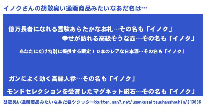 | 意味不明あだ名 | 『住所不定無職イノク(47歳)』 |