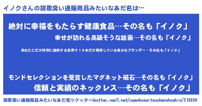 | ヘコむあだ名 | 『イノク(苦笑)』『イノを』 |