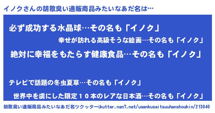 | 意味不明あだ名 | 『永久保存イノク』『ペロリンイノク』 |