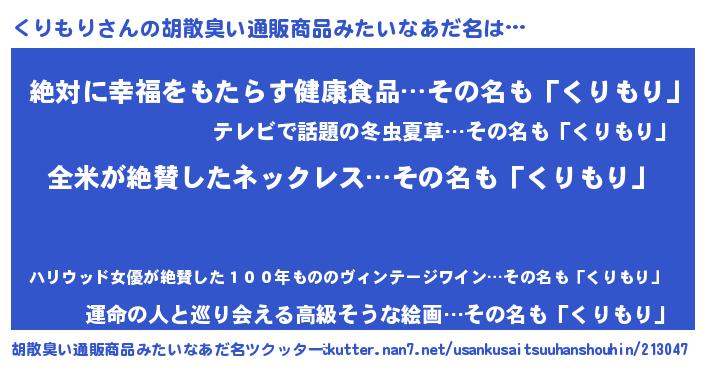| 意味不明あだ名 | 『とにかく怪しいくりもり』 |