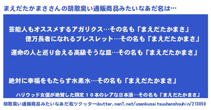 | 意味不明あだ名 | 『まえだたかまさフォーエバー』 |