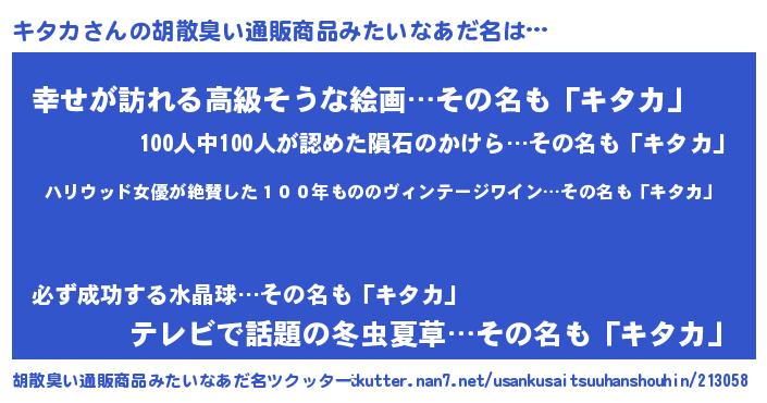 | ヒーロー風カッコイイあだ名 | 『仮面キタダー』『ウルトラキタカマン』 |