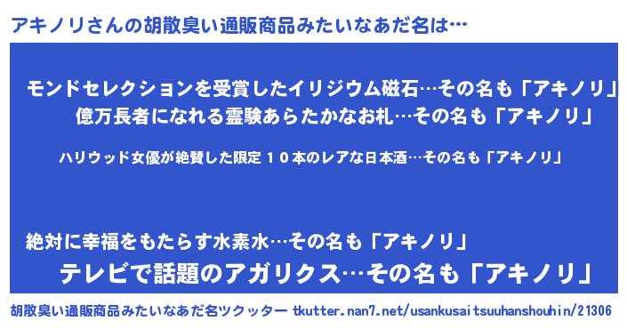 | ヘコむあだ名 | 『アキにゅー』『アキノリ(爆)』 |