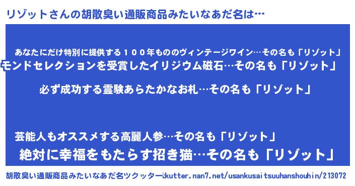 | ヘコむあだ名 | 『リゾっふぃ~』『リゾット(小並感)』 |