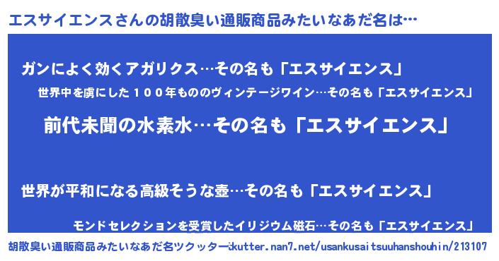 | 男性向けラノベタイトル風あだ名 | 『エスサイエンス~年齢イコール彼女いない歴の魔法使い~』 |