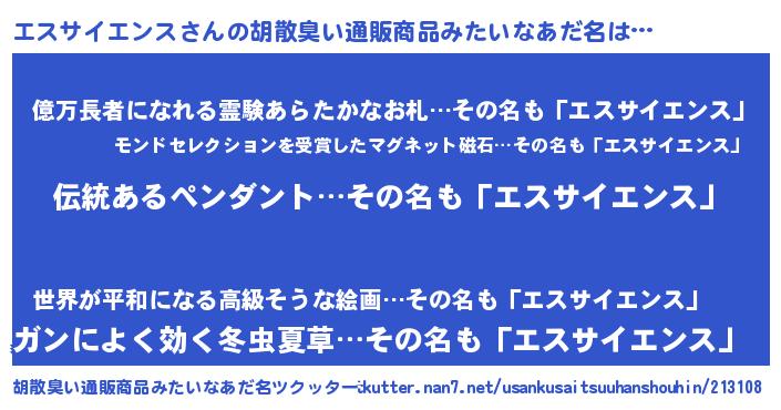 | 意味不明あだ名 | 『とにかく怪しいエスサイエンス』 |