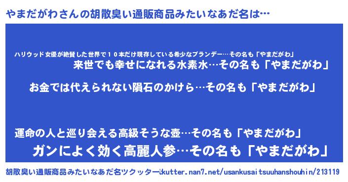 | 欧米人風あだ名 | 『やまだがわ・ステッグマイヤー』 |