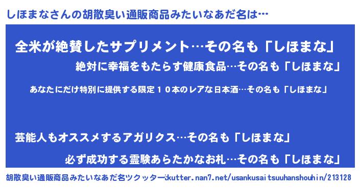 | 意味不明あだ名 | 『住所不定無職しほまな(47歳)』 |