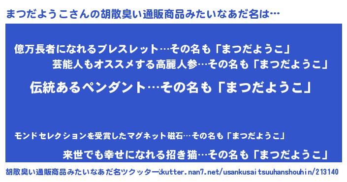 | 意味不明あだ名 | 『とにかく怪しいまつだようこ』 |