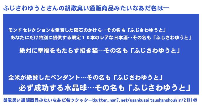 | ヘコむあだ名 | 『ふじさわゆうと(笑)』『ふじふぇ~』 |