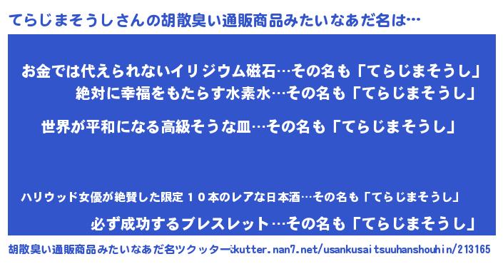 | 男性向けラノベタイトル風あだ名 | 『やはりてらじまそうしの青春ラブコメはまちがっている 』 |