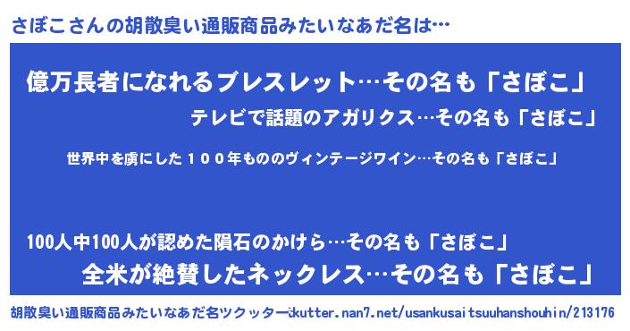 | 欧米人風あだ名 | 『ダレノガレさぼこ』『マイケルさぼこ』 |