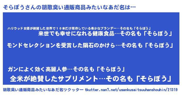 | 欧米人風あだ名 | 『ダニエルそらぼう』『ウサインそらぼう』 |