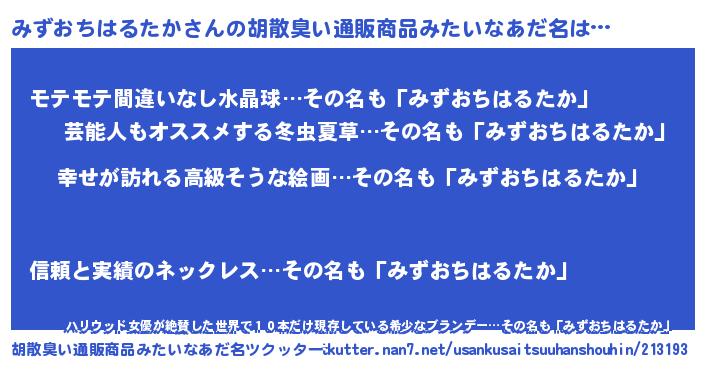 | ヘコむあだ名 | 『つくし』『みずにー』『みずぷりん』 |