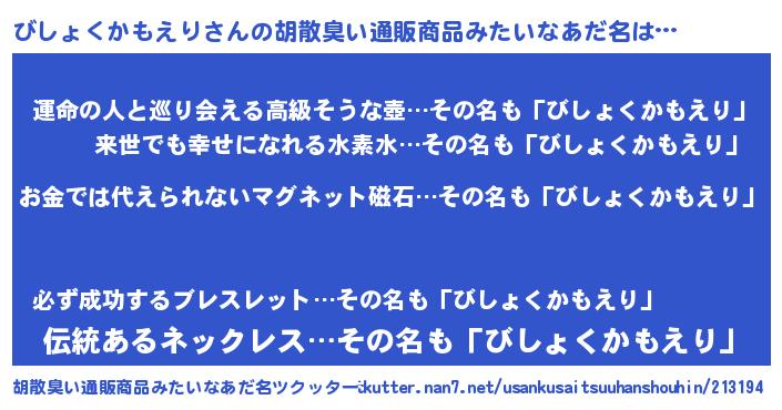 | ヒーロー風カッコイイあだ名 | 『友情の使者びしょくかもえり』 |