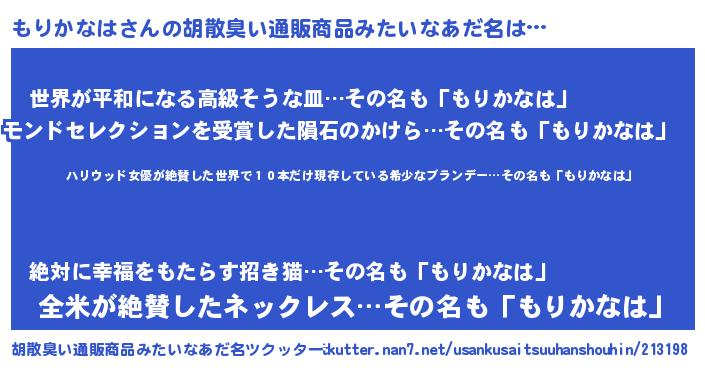 | 意味不明あだ名 | 『住所不定無職もりかなは(89歳)』 |
