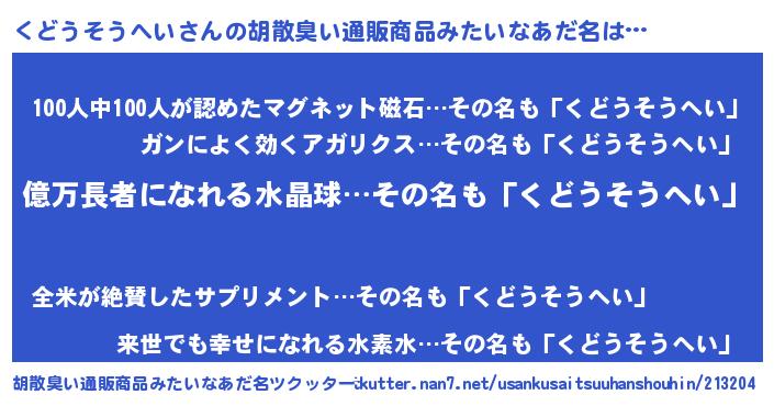 | ヘコむあだ名 | 『くどふぇ~』『くどうそうへい(小並感)』 |