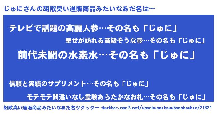 | 意味不明あだ名 | 『永久保存じゅに』『自称じゅに』 |