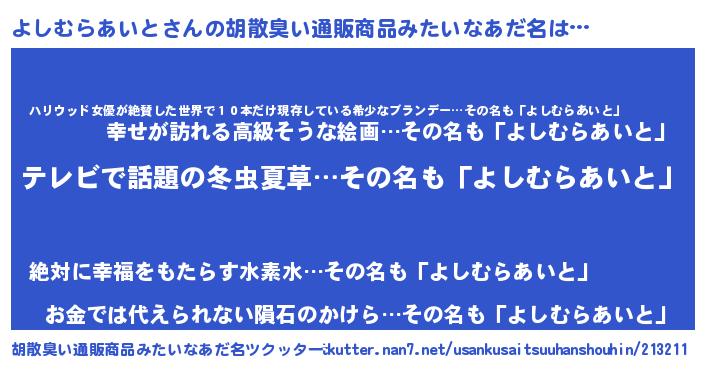 | 意味不明あだ名 | 『自称よしむらあいと』 |