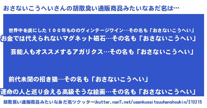 | 欧米人風あだ名 | 『ケンブリッジおさないこうへい』 |