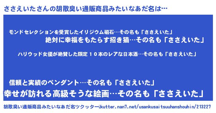 | 意味不明あだ名 | 『住所不定無職ささえいた(39歳)』 |