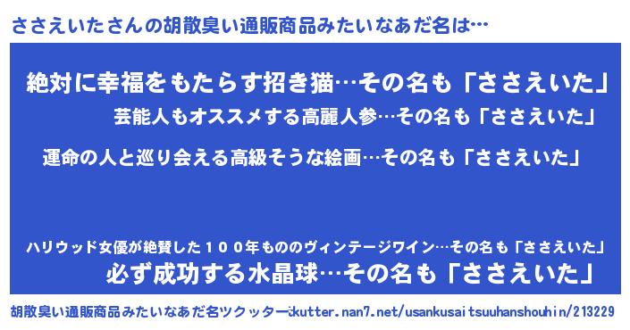 | 意味不明あだ名 | 『ささえいたフォーエバー』 |