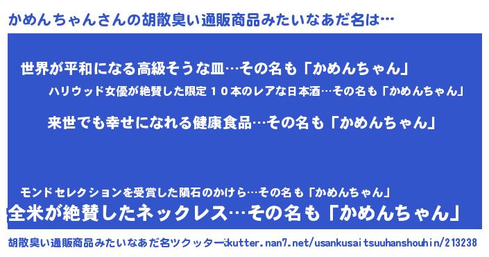| 意味不明あだ名 | 『永久保存かめんちゃん』 |