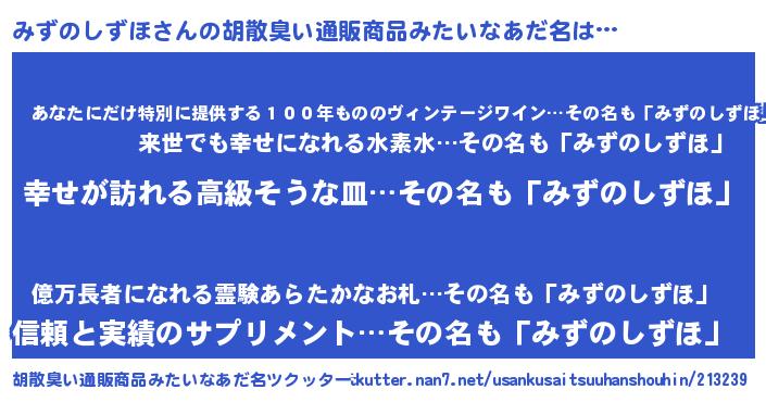 | 意味不明あだ名 | 『みずのしずほフォーエバー』 |