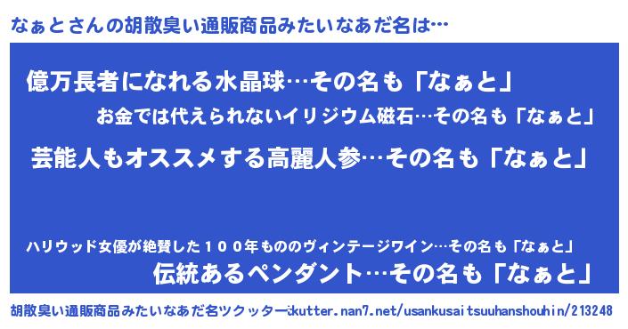 | ヘコむあだ名 | 『なぁにー』『なぁっちょ』『牛乳』 |
