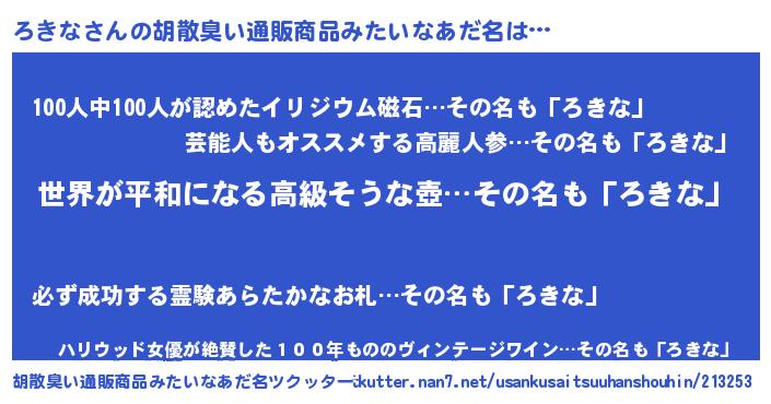 | 意味不明あだ名 | 『ろきなフォーエバー』『自称ろきな』 |