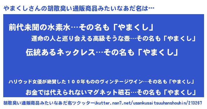 | 意味不明あだ名 | 『とにかく怪しいやまくし』 |