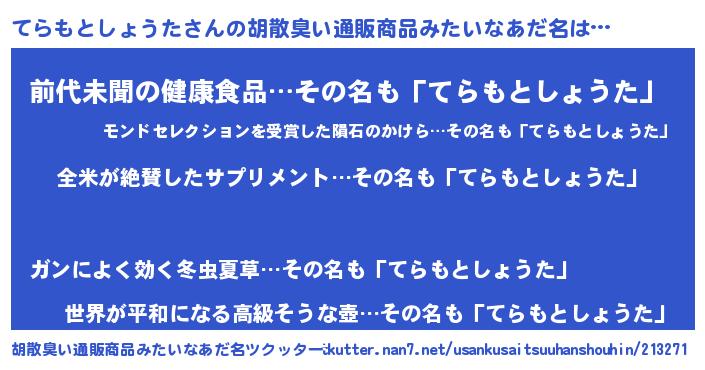 | ヘコむあだ名 | 『てらお』『てらもとしょうた(遠い目)』 |