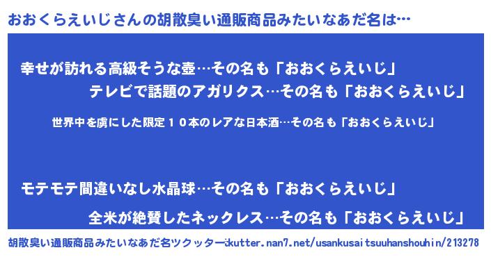 | 男性向けラノベタイトル風あだ名 | 『転生したらおおくらえいじだった件』 |