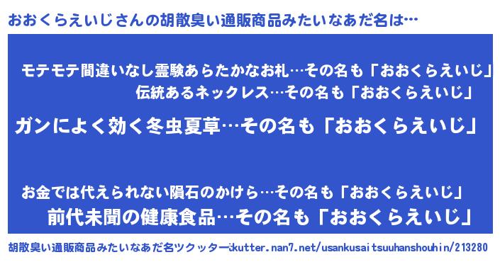 | 意味不明あだ名 | 『自称おおくらえいじ』 |