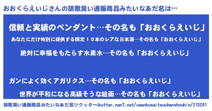 | ヘコむあだ名 | 『おおくらえいじ(苦笑)』『おおぷりん』 |