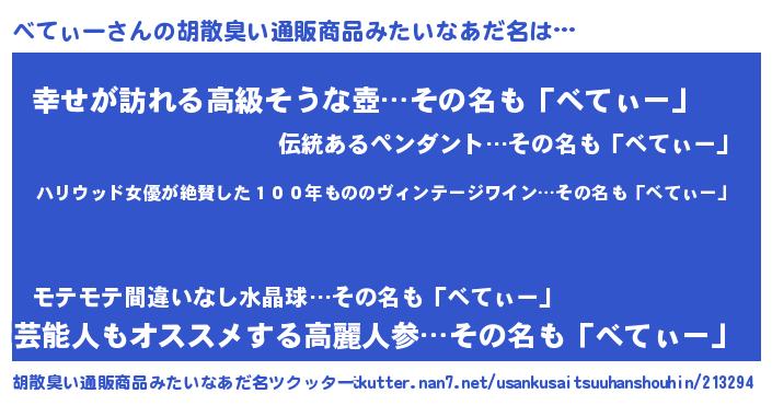 | ヘコむあだ名 | 『牛乳』『べてっぺ』『べてにゅー』 |