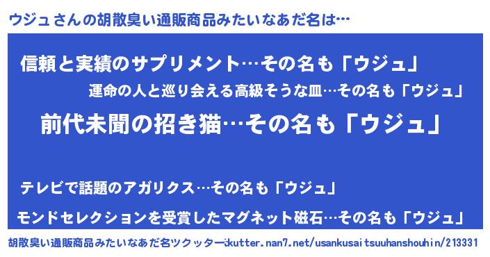 ウジュさんの胡散臭い通販商品みたいなあだ名をツクッター!