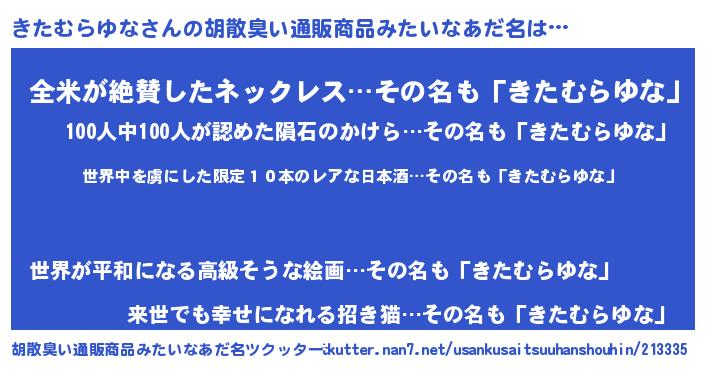 | ヘコむあだ名 | 『きたっ子』『きたむらゆな(笑)』 |
