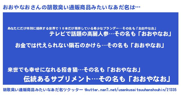 | ヘコむあだ名 | 『おおぷりん』『おおやなお(遠い目)』 |