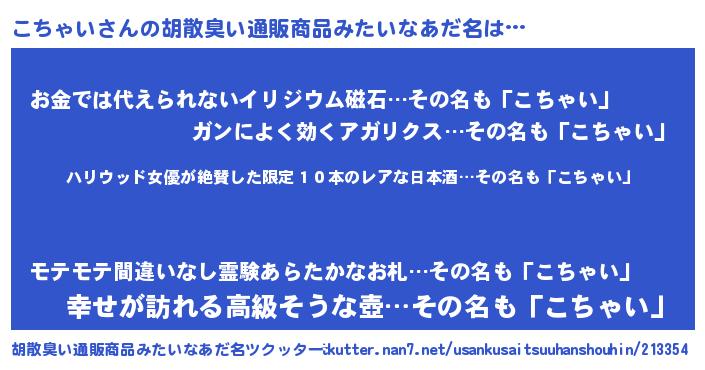 | ヘコむあだ名 | 『牛乳』『こちふぇ~』『こちを』 |