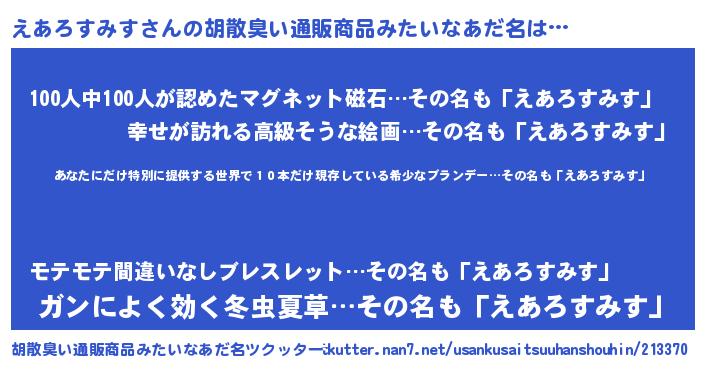 | 意味不明あだ名 | 『住所不定無職えあろすみす(93歳)』 |